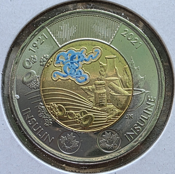 2021년 인슐린 발견 100주년 기념으로 발행된 캐나다 동전을 구입했습니다.
