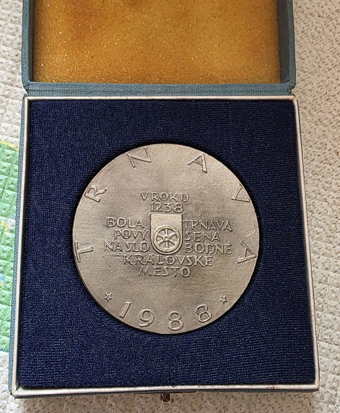 이 메달은 체코 슬로바키아 트르나바(Trnava) 왕립 도시 750주년을 기념해서 만든 것으로 보입니다.